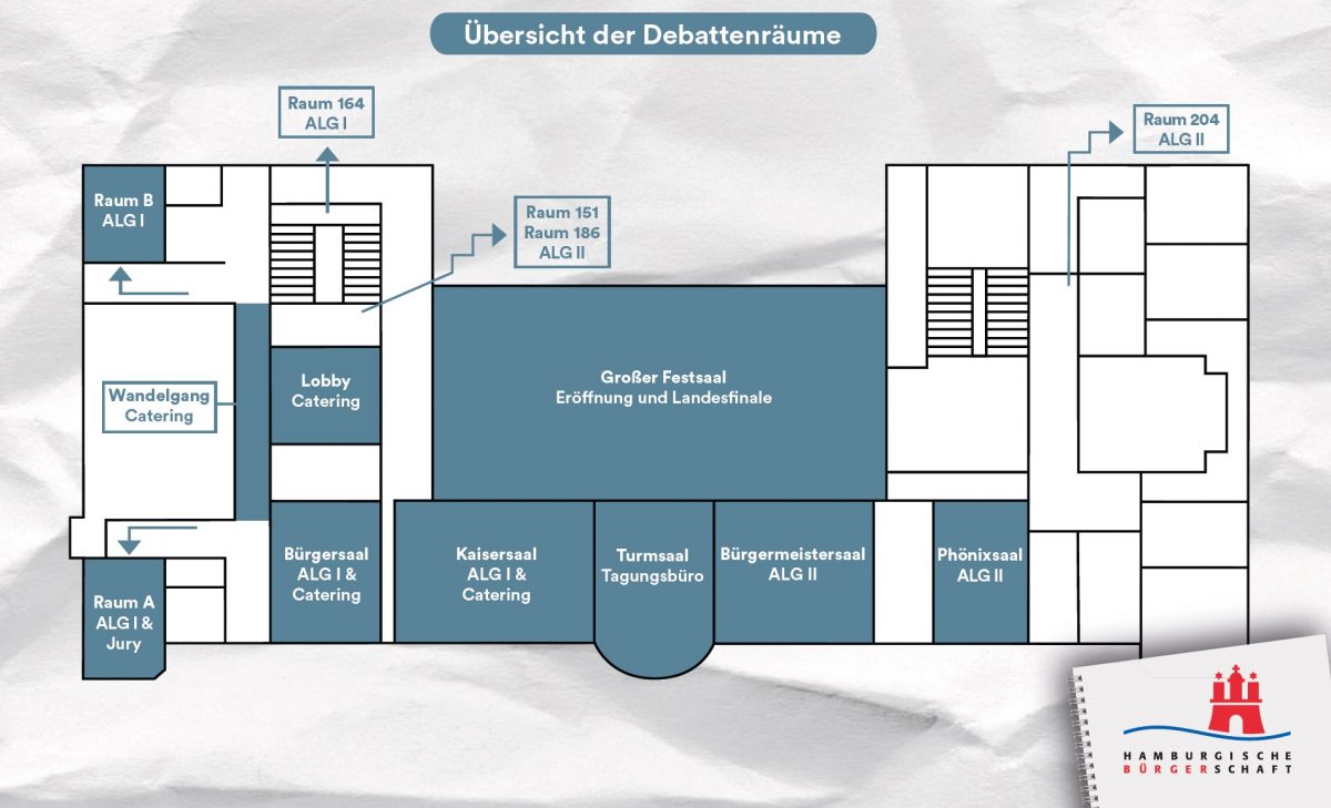 Beim Landesfinale gilt es die beiden besten Debattant:innen pro Altersgruppe zu finden, die im Juni für Hamburg bei dem Bundeswettbewerb in Berlin antreten.