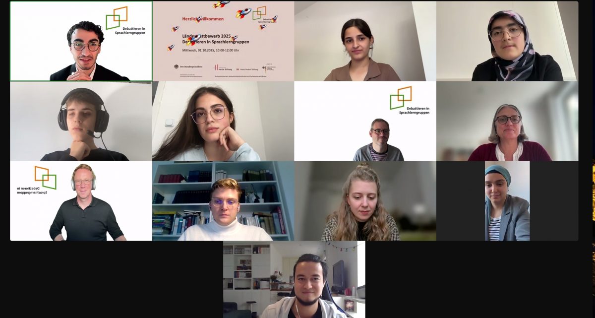 Zum vierten Mal fand am 01.10.25 ein Länderwettbewerb im Rahmen des Programms „Debattieren in Sprachlerngruppen“ statt. Im digitalen Format begann der Wettbewerb zunächst mit Grußworten der ministeriellen Ansprechpartnerin für „Jugend debattiert“ in Bremen, Renate Raschen, sowie von Jan-Jonathan Bock, dem Leiter des Projekts. Dann ging es zur Debatte über…