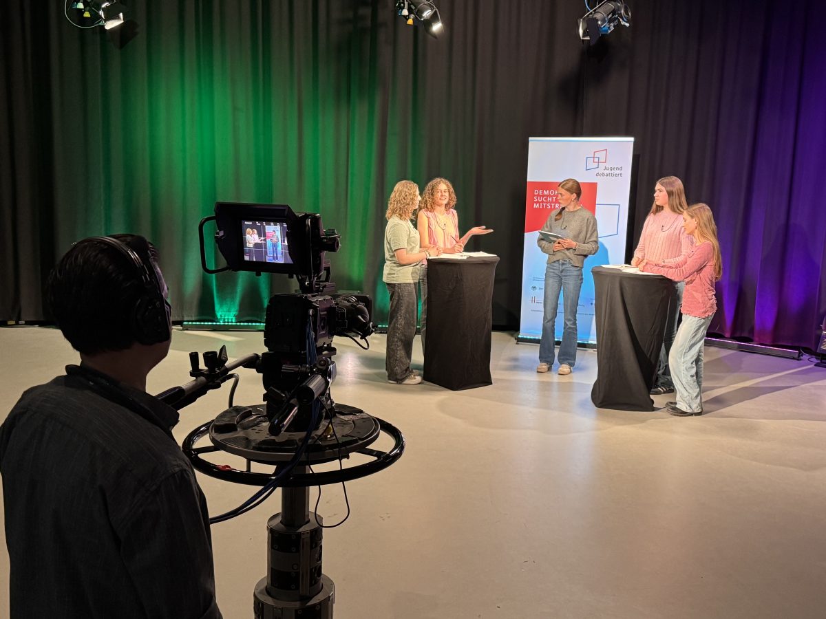 Verfeinert Eure Skills zusätzlich vor der Kamera im TV-Studio. Was verrät eure Mimik und Gestik, wenn ihr sprecht? Wie könnt ihr mit eurer Stimme noch überzeugender werden und dabei natürlich bleiben? In Kooperation mit TIDE – Hamburgs Bürger:innensender – und mit der Medieninitiative #UseTheNews entdeckt ihr zusammen mit Medienprofis neue Stärken an euch. Am zweiten Trainingstag führen wir eure neuen Erkenntnisse in einer Debatte zusammen, die als Video-Mitschnitt aufgezeichnet wird.