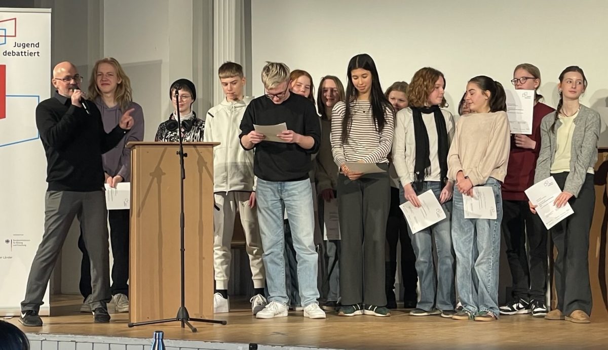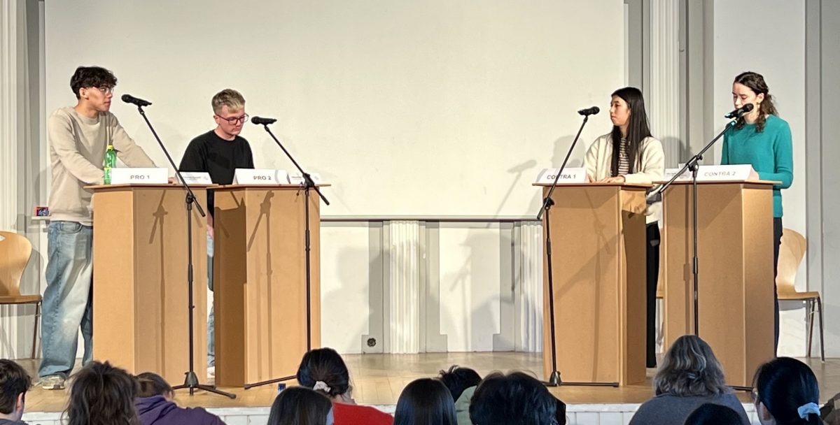 - pro Schule und Altersgruppe 2 Debattant*innen (teilweise 3)