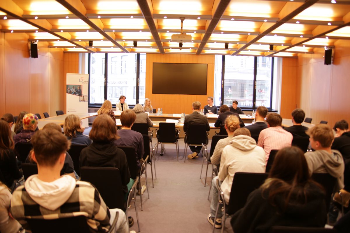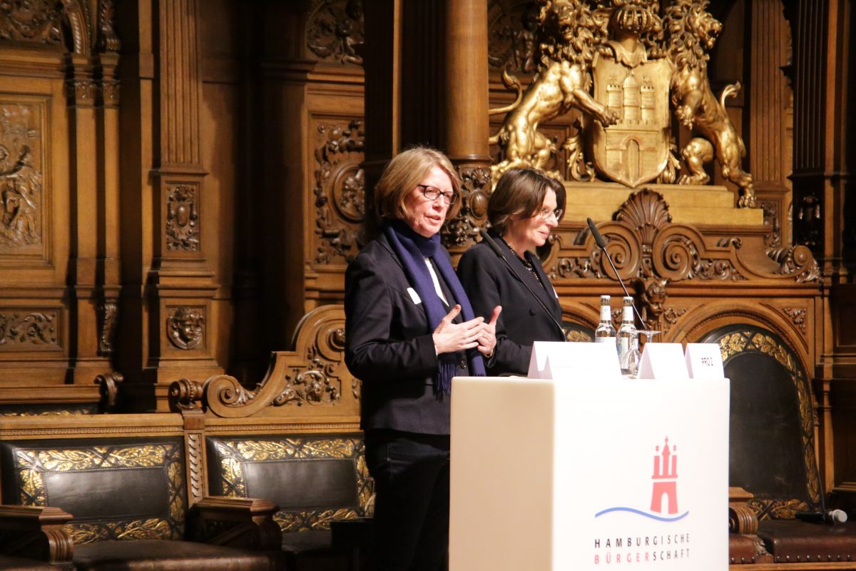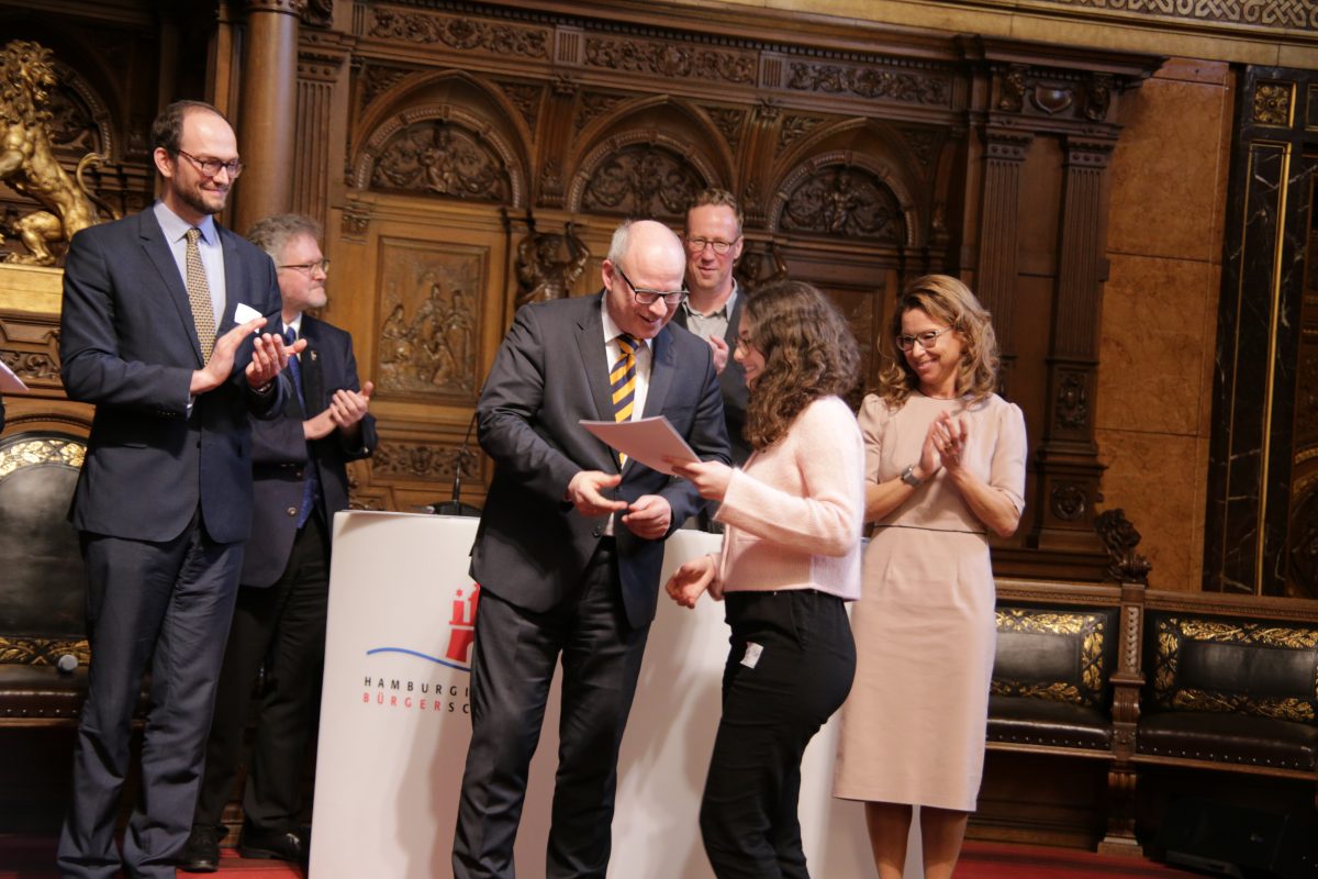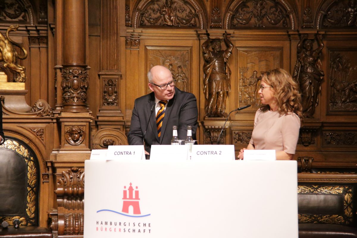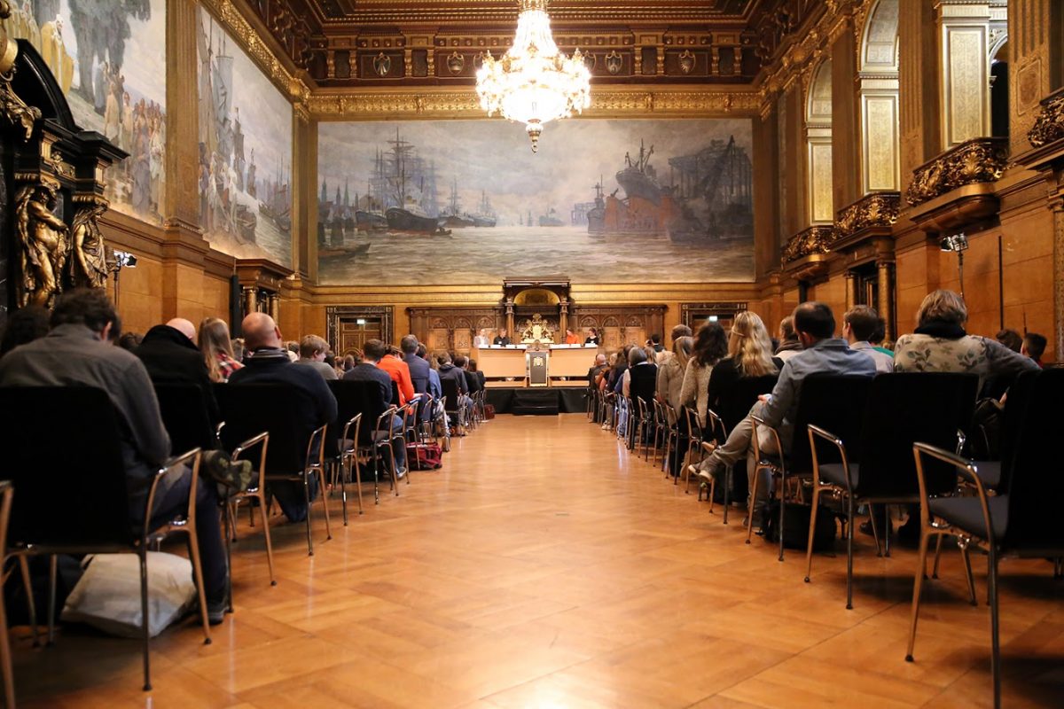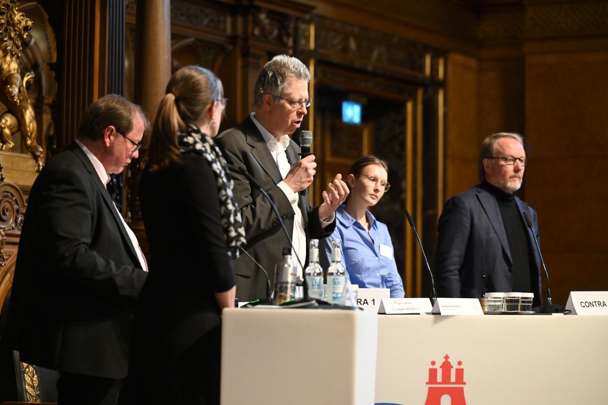 Carola Veit – Präsidentin der Hamburgischen Bürgerschaft, Thomas Bressau – Wettbewerbsreferent der BSFB, Dr. Jan-Jonathan Bock – Projektleiter von Jugend Debattiert, sowie Fraktionsvertreter:innen der Parteien der Bürgerschaft und unsere Medienpartner begleiteten den Landeswettbewerb als Juror:innen und Gäste der Talkrunde.