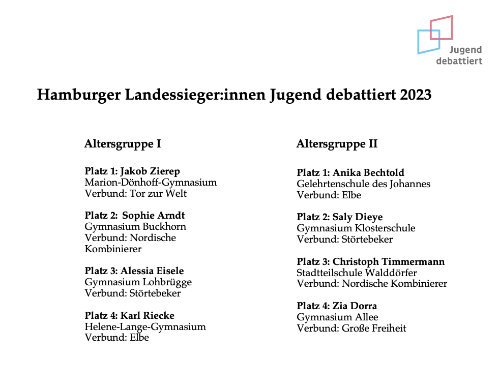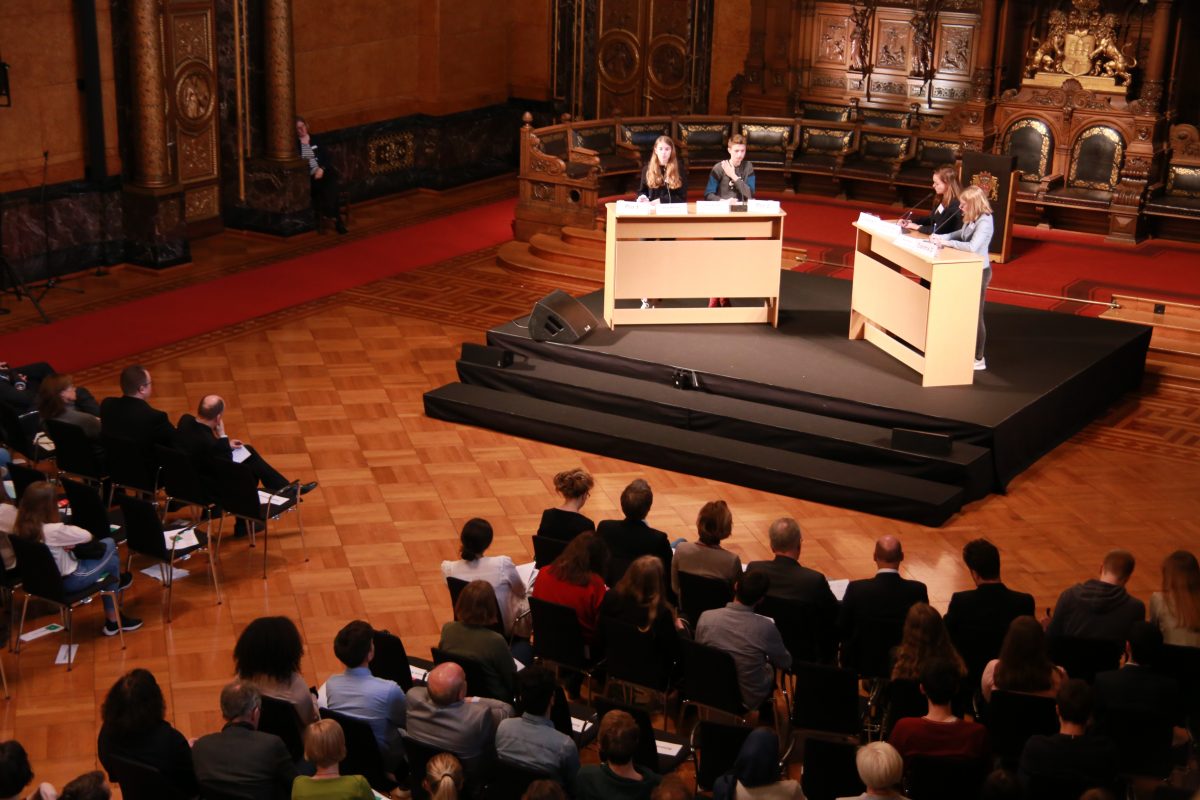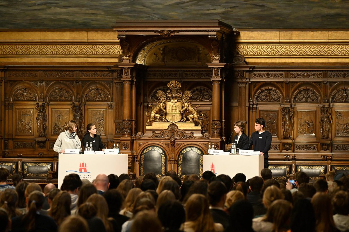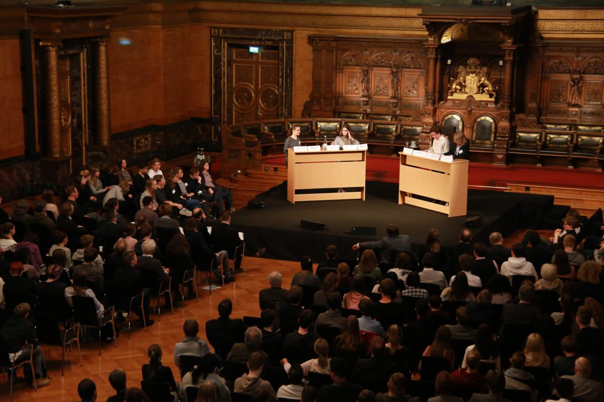 Nachdem rund 15.000 Schülerinnen und Schüler aus 82 Hamburger Schulen bei den Vorentscheiden zu „Jugend debattiert“ mitgemacht haben, traten die 40 besten von ihnen in den beiden Vorrunden des Landeswettbewerbs an.