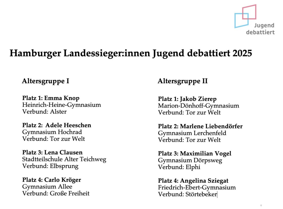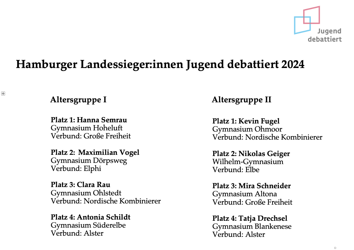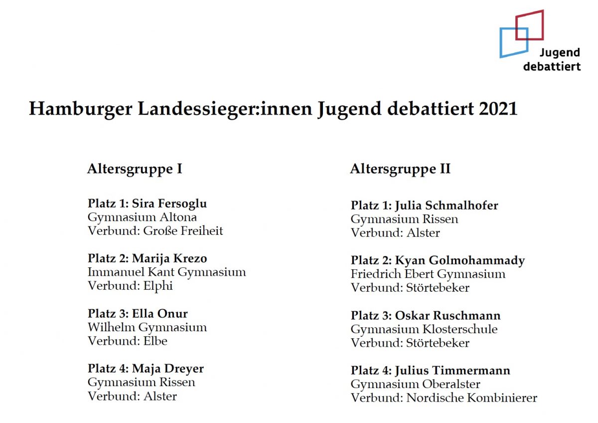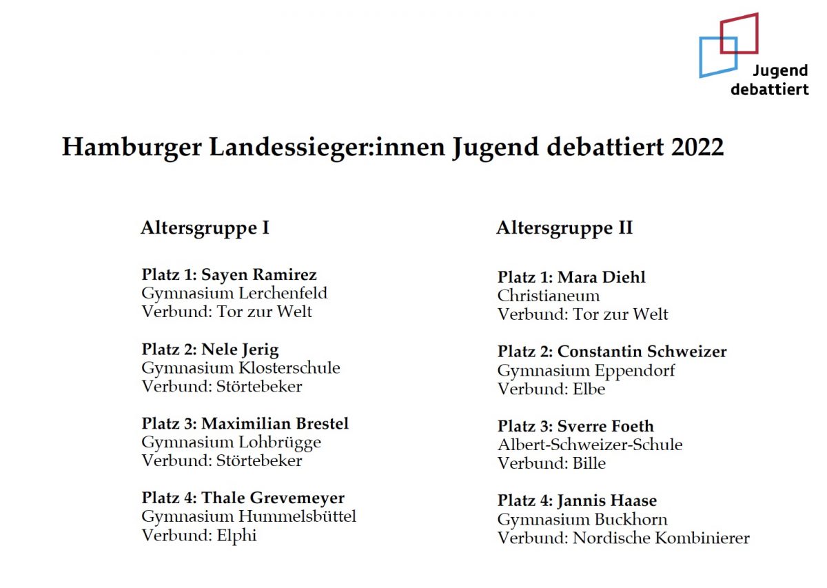 Unsere beiden Sieger:innen pro Altersgruppe treten für Hamburg bei dem Bundeswettbewerb in Berlin an.